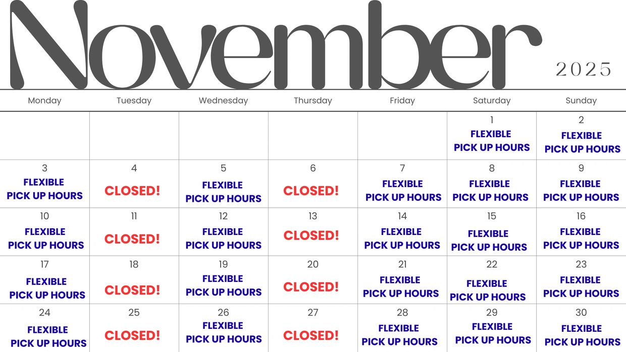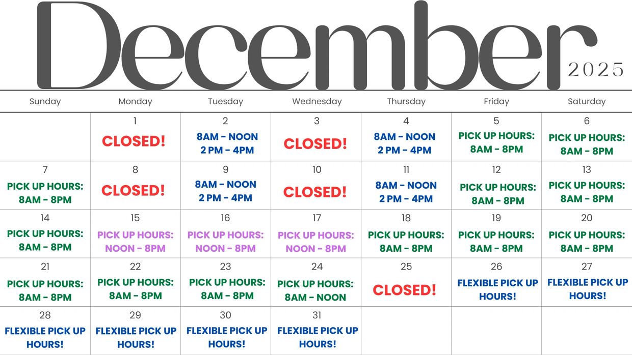 Note: For December, pick-up times are strictly enforced to ensure a smooth holiday schedule.